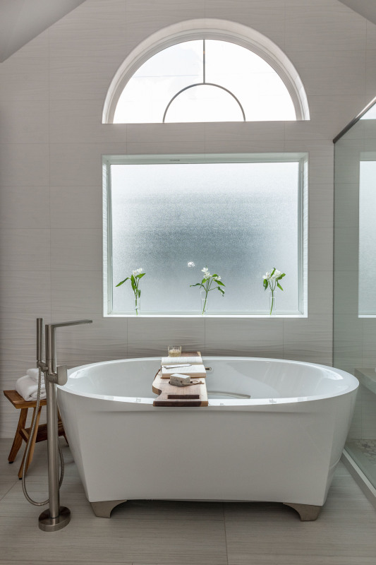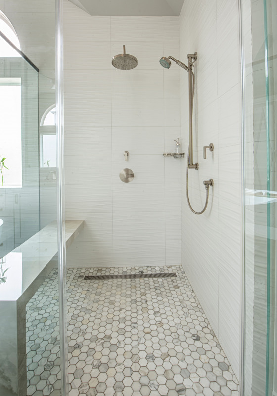 Three bathrooms were remodeled in a home in Greater Uptown, Houston. All three bathroom remodels were named the Texas Association of Builders Star Awards (TAB) Finalists.  These happy homeowners now have a luxurious spa-like master bathroom with a freestanding soaker tub and large glass enclosed shower. Also remodeled is a shared Hollywood bath with a shower, and a third floor bathroom with shower.  All modern features, unique tilework and contemporary finishes. The 3rd floor attic bathroom which was the smallest of the three baths, was a winner  of a TAB 2022 Star Award Winner in the category of Best Bathroom Renovation under $25,000.  All three bathrooms were designed by Crystal Reeves, ASID, RID of CLR Design Services, Inc.